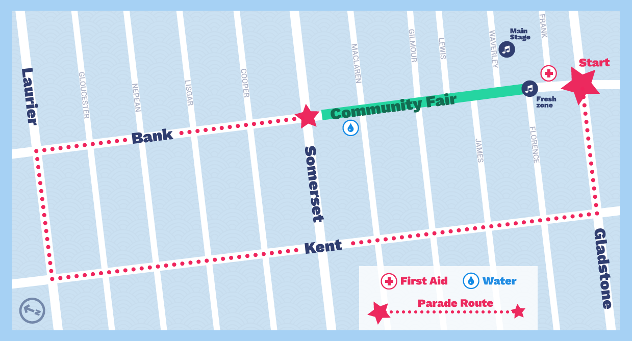 The event means several road closures in Centretown this afternoon. This year's parade takes Gladstone, Kent, Laurier, and Bank and culiminates at Bank and Somerset where a community fair is taking place. Bank Street is closed from there to Gladstone for the fair.