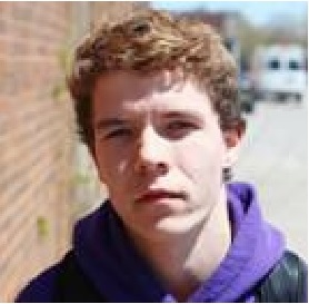 He has medium length brown hair with blue eyes and with an acne complexion.