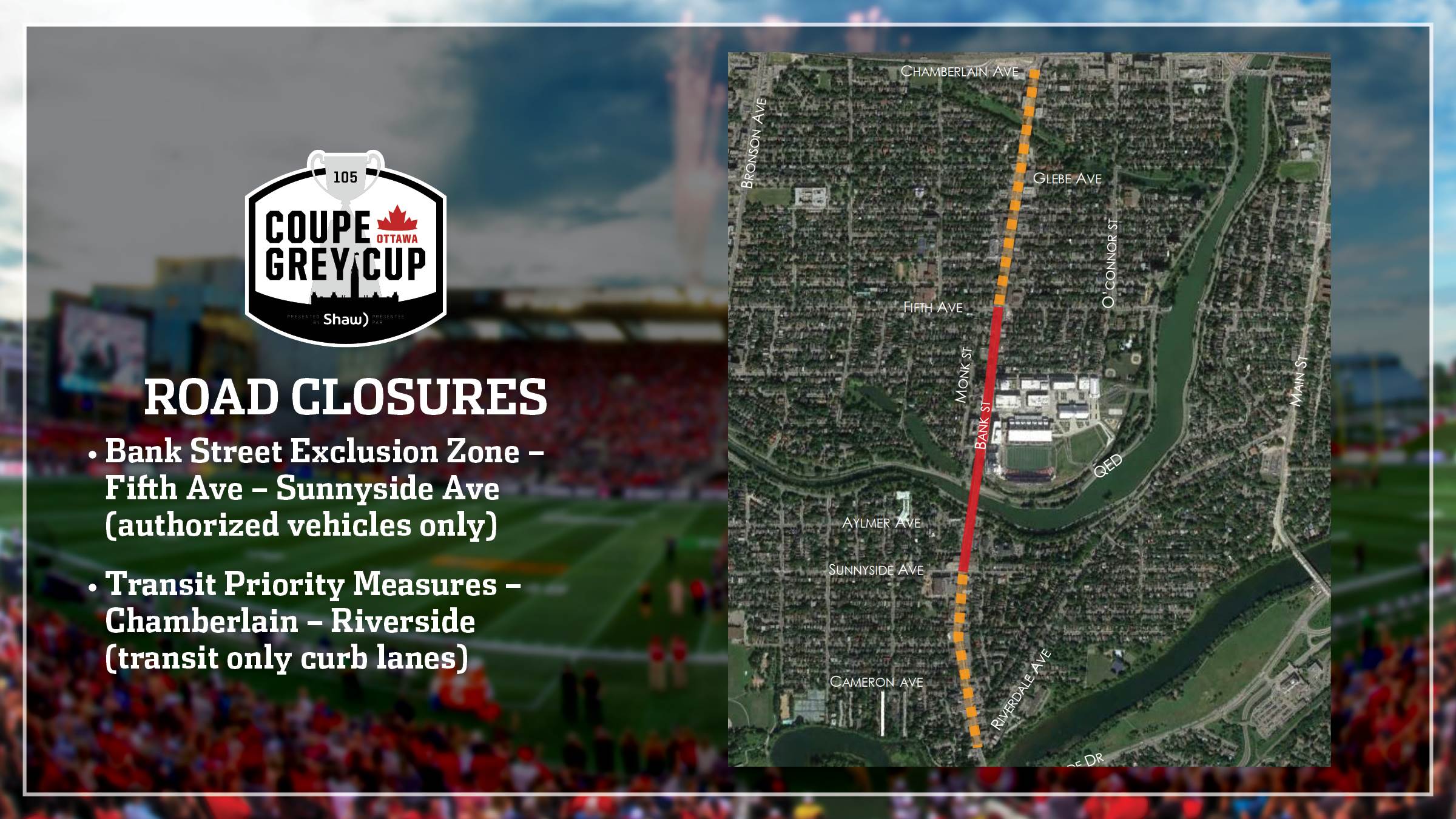 Anyone heading to Lansdowne Park for a Grey Cup Festival Event will have free access to the bus three hours before and after the event, as long as they produce a ticket.