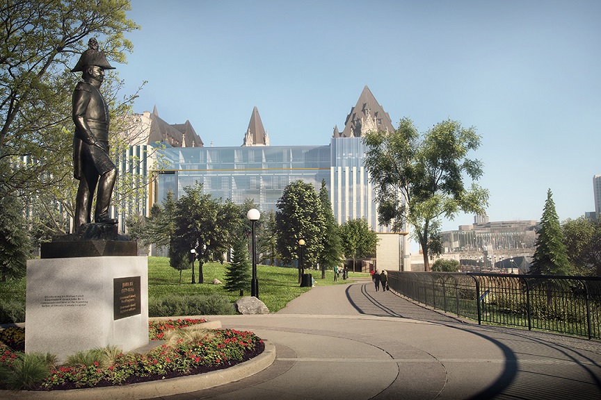 View of the Chateau Laurier expansion from Colonel By Monument Statue in Major’s Hill Park (Larco Investments via City of Ottawa)