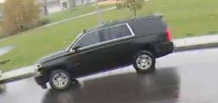 The vehicle is described as a black Chevorlet Tahoe with front and back license plates believed to be Ontario license plates.
