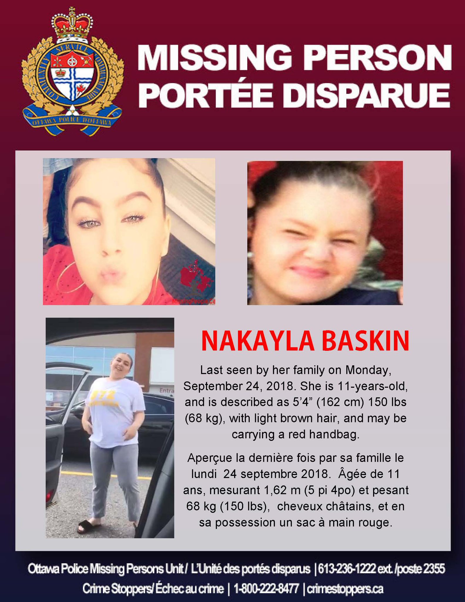 Ottawa Police have released a photo of a vehicle believed to have been involved in the disappearance of 11-year-old Nakayla Baskin.