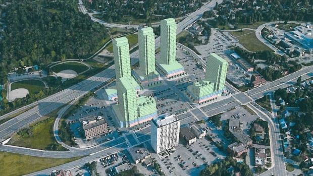 The City notes the plan would involve three phases and take 20 years to reach completion. The first phase, expected to be completed within five years, would involve demolishing the building at the southeast corner of the property and erecting a 22-storey, mixed-use tower in its place. The second phase would build a second 22-storey tower in the southwest corner of the mall. The third phase would involve the remainder of the mall being demolished, with two 36-storey towers and one 24-storey tower built.