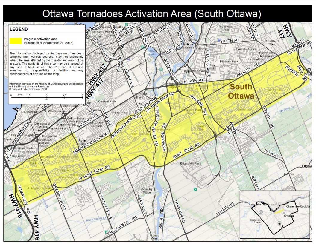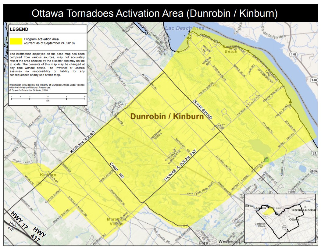 The Ontario government has opened up applications for disaster relief assistance. Residents in Dunrobin and Ottawa South that are located in "activation zones" can apply for funding. Information can be found here.
